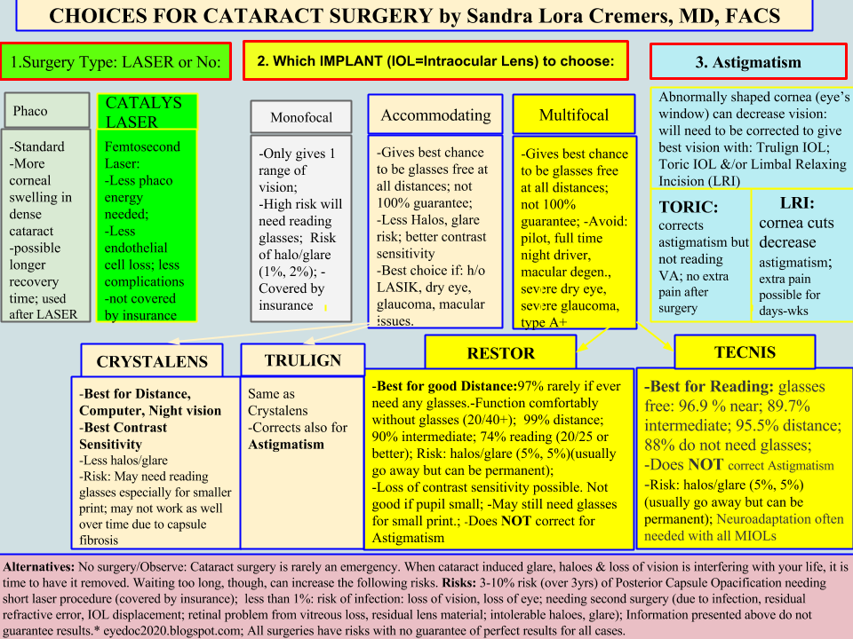 Below is a flow chart to think about when deciding on what type of surgery to have, what implant to have, and, if astigmatism is present, how best to correct corneal astigmatism.