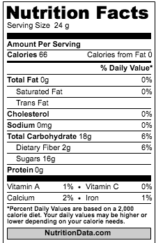 Nutrition Data’s Opinion, Completeness Score™, Fullness Factor™, Rating, Estimated Glycemic Load (eGL), and Better Choices Substitutions™ are editorial opinions of NutritionData.com, given without warranty, and are not intended to replace the advice of a nutritionist or health-care professional. Nutrition Data’s opinions and ratings are based on weighted averages of the nutrient densities of those nutrients for which the FDA has established Daily Values, and do not consider other nutrients that may be important to your health or take into account your individual needs. Consequently, Nutrition Data’s higher-rated foods may not necessarily be healthier for you than lower-rated ones. All foods, regardless of their rating, have the potential to play an important role in your diet.