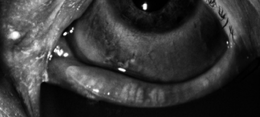 But above you can see the loss of Meibomian glands in a patient who has been on a couple of cycles of Docetaxel for breast cancer: (the white lines are the glands: there should be about 25-30 of them. All that is left are a few glands on the upper photo; more on the bottom photo).