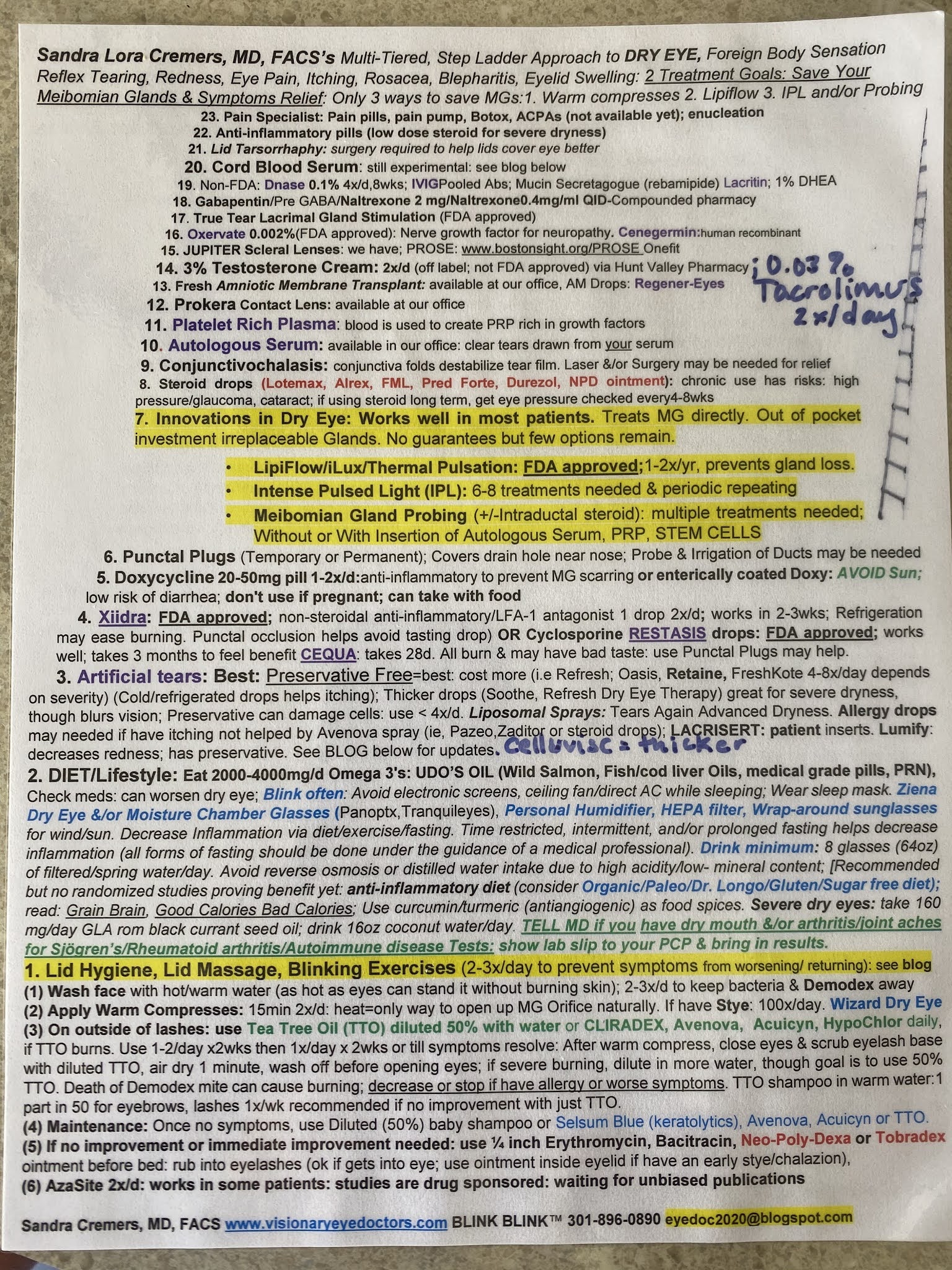 We have had more success with Autologous Adipose-Derived Stem cells inserted into the Meibomian glands (before the Maskin cannulas were discontinued) and as drops and Cord blood serum drops.