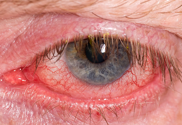 c. Blepharitis: bacteria or mites on eyelashes which irritate eyes.