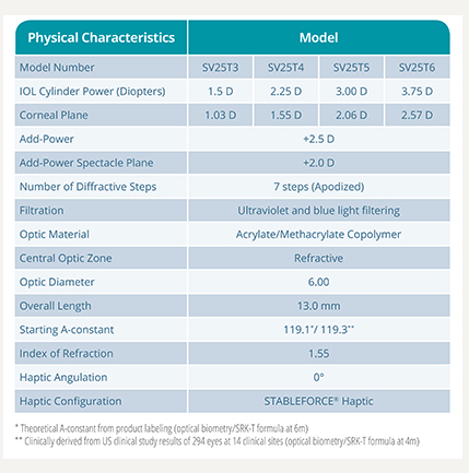 cause a reduction in contrast sensitivity under certain conditions, compared to an aspheric monofocal IOL. The physician should carefully weigh the potential risks and benefits for each patient, and should fully inform the patient of the potential for reduced contrast sensitivity before implanting the lens in patients. Special consideration of potential visual problems should be made before implanting the lens in patients with macular disease, amblyopia, corneal irregularities, or other ocular disease which may cause present or future reduction in acuity or contrast sensitivity. Patients implanted with the lens should be informed to exercise special caution when driving at night or in poor visibility conditions.